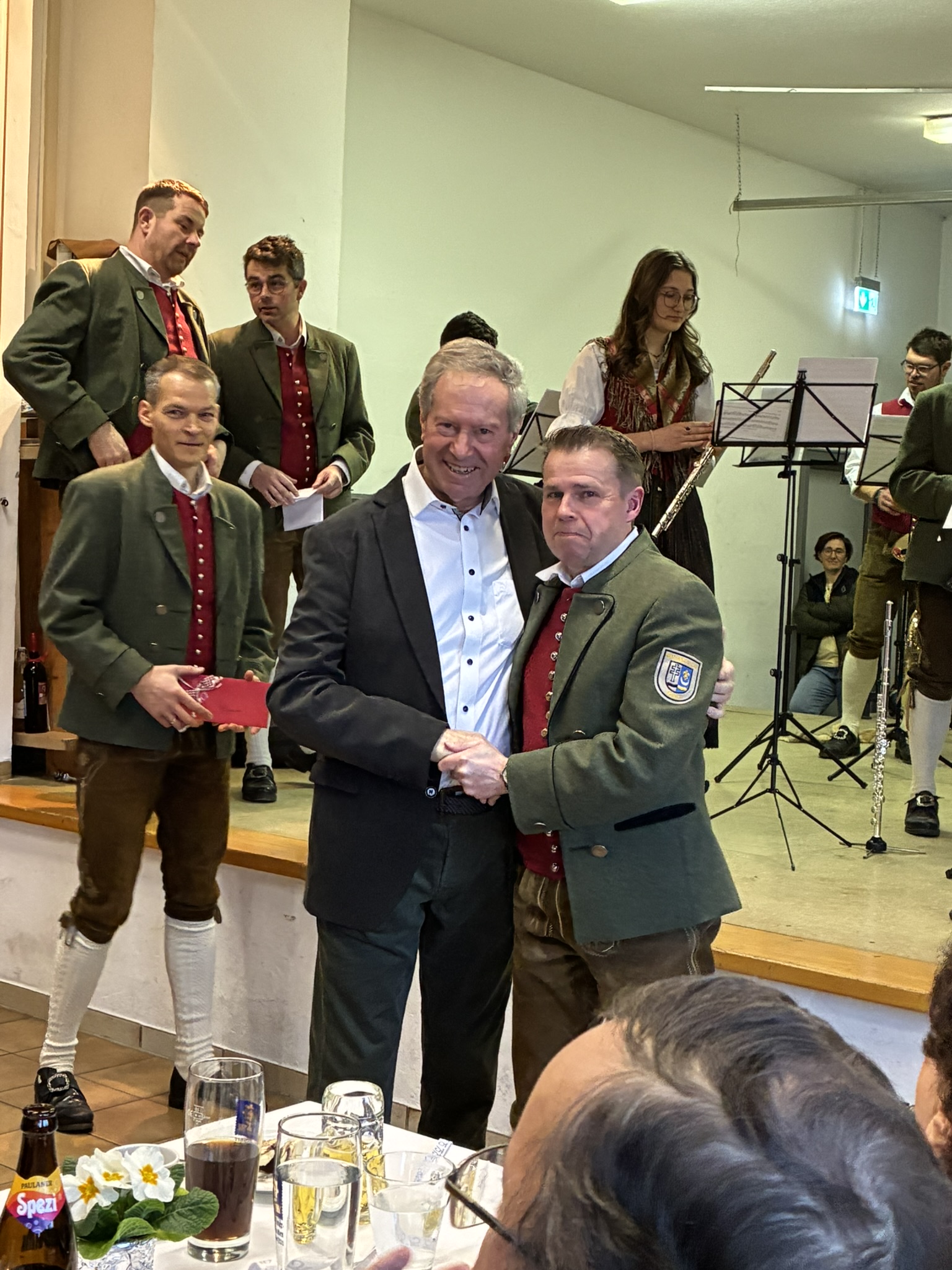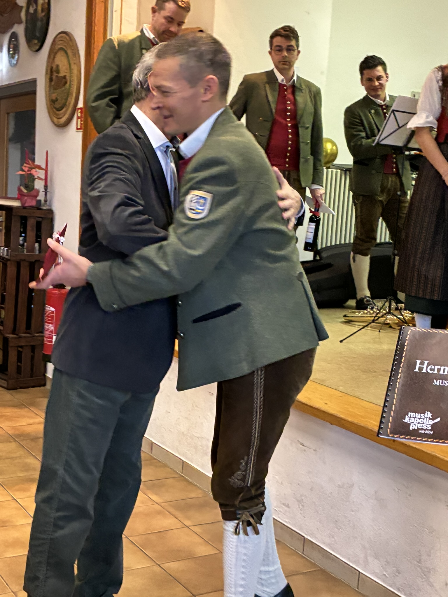 Am 24.01.2026 spielten wir unserem Ehrenmitglied Hermann Bechter zu seinem 75. Geburtstag ein Ständchen. Hermann ist als Mitglied der Vorstandschaft im Förderverein sehr aktiv und engagiert sich dort mit großem Einsatz. Besonders schön ist, dass er bei den runden Geburtstagen der Jubilarinnen und Jubilare im Förderverein persönlich die Glückwünsche überbringt. Damit zeigt er immer wieder seine große Verbundenheit zum Verein.